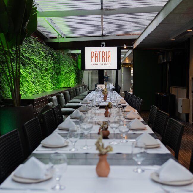 O Restaurante Pátria Cozinha do Brasil é especializado em culinária brasileira contemporânea, oferecendo um ambiente elegante, acolhedor e ideal para eventos sociais e corporativos. O espaço permite personalização de decoração e música, principalmente quando reservado de forma exclusiva.
